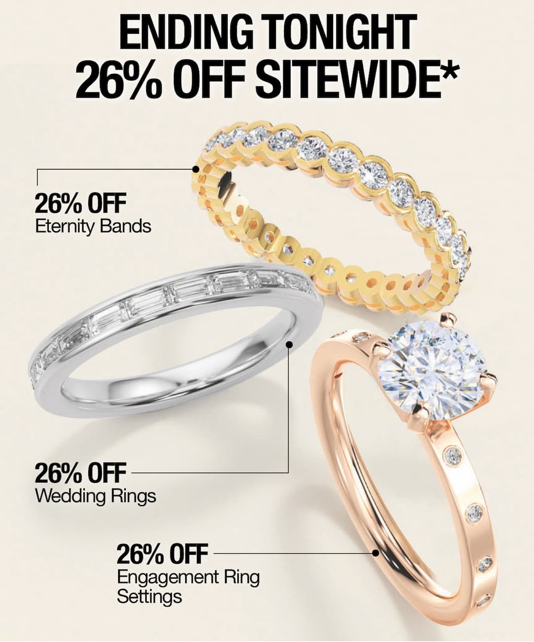 Terms & Conditions: Save 26% on your Lab-Grown Diamond, Engagement Ring Setting, Wedding Ring or Jewelry purchase with code ANNIVERSARY. No minimum purchase required. Excludes Design Your Own Engagement Ring Settings, loose Natural Diamonds and Design Your Own Jewelry Baskets. The promotion is applicable only to eligible items and cannot be applied to taxes, shipping or any additional charges that may apply. Promotion is valid through Monday September 29, 2025 at 11:59 PM EST.